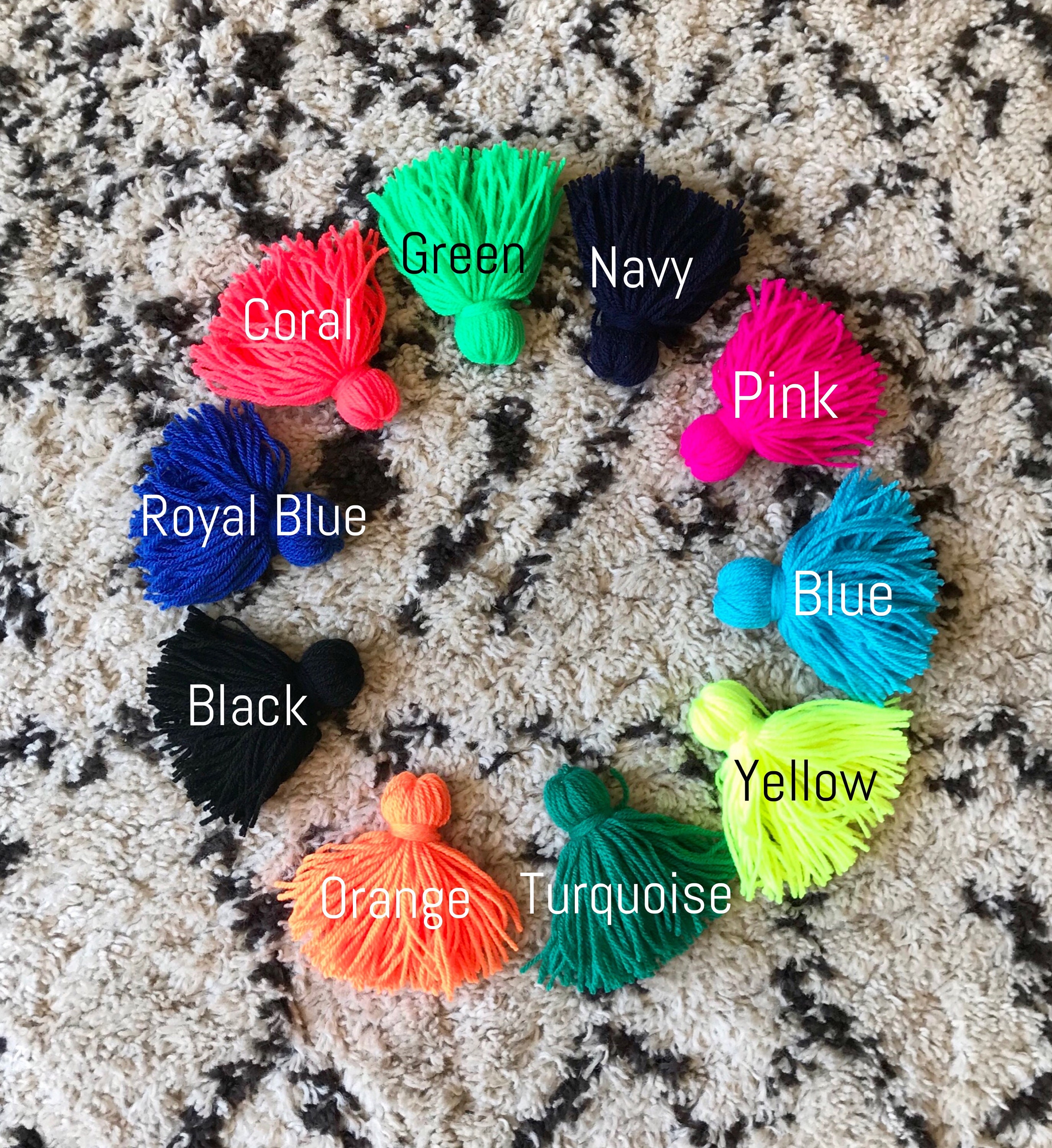 Please tell me what you would like embroidered on your basket in the note box at check-out. Please also let me know the wool colour for the lettering and for the tassel.